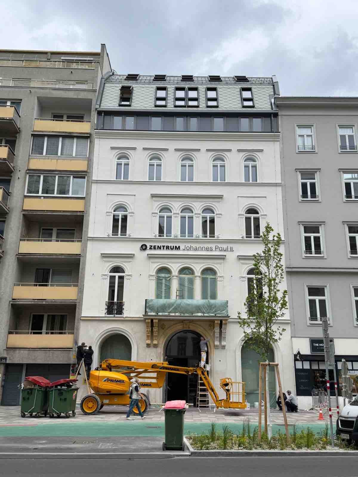 … schmückt nun die Fassade der Praterstraße 28. Wir gehen mit großen Schritten auf die Schlüsselübergabe für das neue Gebäude zu – und mit jedem Tag steigt die Vorfreude, da das neue Zentrum wirklich den Charakters eines neuen Zuhauses bekommt!