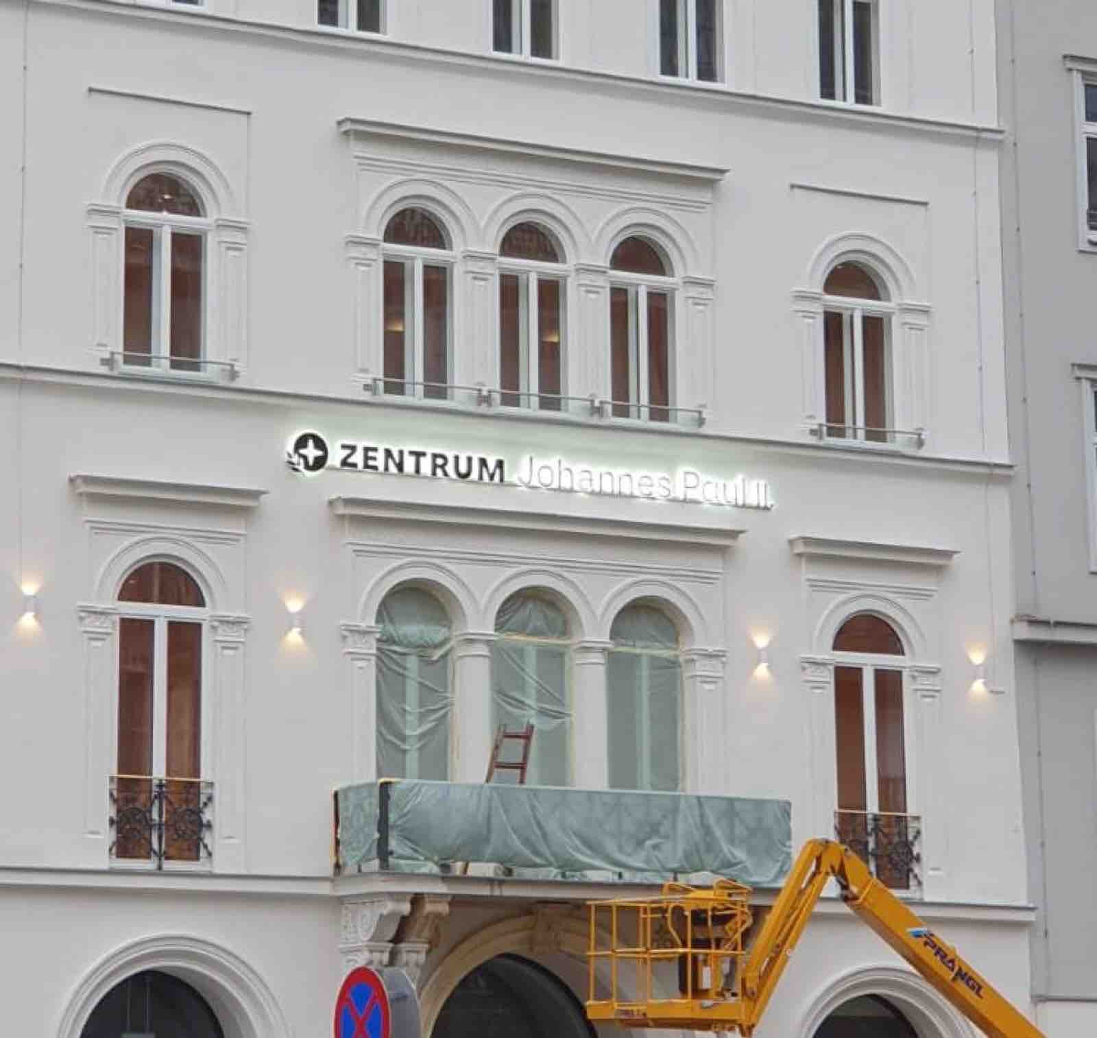 Zentrum Johannes Paul II. ... schmückt nun die Fassade [...]