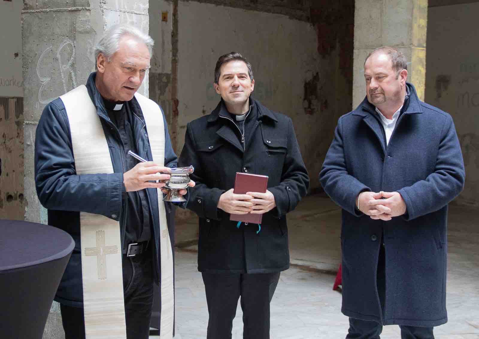 „Bei diesem kleinen Festakt erbitte ich den Segen Gottes für alle, die hierherkommen, dass sie als lebendige Steine wieder hinausgehen, von denen eine Kraft ausgeht“, sagte Bischofsvikar Dariusz Schutzki beim Startschuss für die Bauarbeiten. „Das neue Zentrum soll ein missionarischer Ort sein, wo das Wort Gottes verkündigt wird und die Menschen von diesem Wort erfüllt werden, von der wunderbaren Botschaft, die wir Christen haben. Die Liebe Gottes erfülle alle Menschen hier mit Freude, Kraft und Frieden. Es ist wichtig, dass wir Frieden stiften, der Friede beginnt in unseren Herzen.“